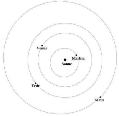 Wenn man heute vom Sonnensystem spricht, denken die meisten Leute an eine Scheibe, die man sich wie aus einer Höhe von einigen hundert Millionen Kilometer beobachtet vorstellt (Abbildung 1). Da natürlich noch kein Mensch das wirklich so gesehen hat, sind daher ein paar Worte angebracht über die Himmelsbewegungen, wie sie am Himmel tatsächlich zu beobachten sind und wie sie dem Menschen seit Olims Zeiten zu schaffen machten, bis Kepler sie schließlich in ihre Ordnung zu bringen wußte. Neben den sich schön regelmäßig bewegenden Fixsternen fand man nämlich fünf Irrsterne (griechisch: πλανητης): Merkur, Venus, Mars, Jupiter und Saturn, die sich immer auf sehr eigentümliche Weise bewegten.