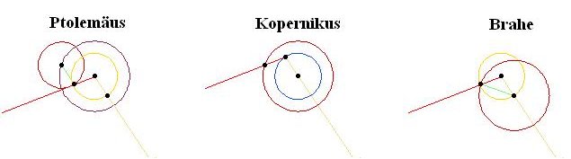 Kepler zeigte im ersten Teil der Neuen Astronomie, daß alle drei Systeme mathematisch und geometrisch vollständig gleichwertig sind, und daß die Wahl zwischen ihnen reine Geschmackssache sei und der Freiheit der Meinung unterliege; d.h., jeder der drei, Ptolemäus, Kopernikus und Brahe hatte seine eigene Wahrheit, oder besser gesagt gar keine. Die „Kopernikanische Revolution“, die Sonne in die Weltmitte zu setzen, war also gar keine Revolution, sie hat das mittelalterliche Denken gar nicht umgeworfen, sondern lediglich alte Axiome3 in eine neue Form gebracht. Abbildung 3 stellt die „Gleichwertigkeit der Hypothesen“ dar.