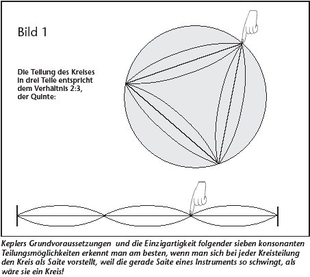 Keplers Grundbedingungen und die Einzigartigkeit dieser sieben konsonanten Teilungsmöglichkeiten sieht man am besten, wenn man sich bei jeder Kreisteilung den Kreis als Saite vorstellt, weil die gerade Saite eines Instruments so schwingt, als wäre sie ein Kreis!
