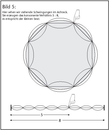 Die kleine Sexte wird noch durch die einzige beim Achteck erlaubte Teilung 5:8 erzeugt (siehe Abb. 5), indem vom Achteck fünf Teile festgehalten werden: